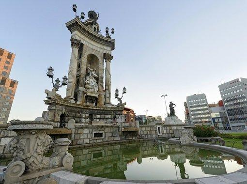 西班牙广场为巴塞罗那最大的广场之一,为巴塞罗那几条重要干道的交汇处,加泰罗尼亚议会大道、平行大道、塔拉戈纳街、玛丽亚•克里斯蒂娜女王大道等在此交汇。西班牙广场上最引人注目的莫过于魔幻喷泉,为世界第二大喷泉,由工程师卡利斯•布伊盖斯设计,每个来此的游客必看喷泉表演。不论夏日的黄昏,还是冬日的夜晚,魔幻喷泉的表演都是一样的精彩绝伦,美丽和壮丽是无法用言语形容的。除了喷泉外,西班牙广场附近还有巴塞罗那最知名的地标建筑威尼斯塔、巴塞罗那竞技场、米罗公园等旅游目的地。