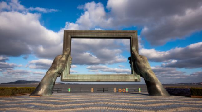 威海公园画中画雕塑